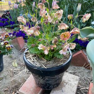 ゲウム プリティコートピーチ♪♪ ゲウムて下向きでも咲くの? 並んで3つ下向いてるのがかわいい❤︎ 初めてお迎えしたのでワクワクです😆 色が、イエローからピーチになるのかな ( Ꙩ_ ꙩ)? 雰囲気がオダマキにも似てるかな? まだ観察が足りません 笑 じっくり眺め回したいと思います🤣