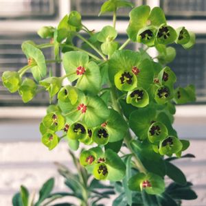 “ユーフォルビア・マーチニー” GSの投稿を見て欲しくなり、かなり探し回りましたが見つかりませんでした。 私用で広島市に行った時に立ち寄った園芸店で発見(○_○)!! やっとお迎え出来ました。 迎えた時は全身真っ赤っかだったのが、段々緑色になってきてやっと花が咲きました。 この独特の花がたまらんわ~(^o^)
