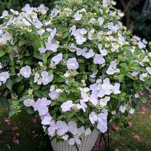 今日はどしゃ降り。 ずっと雨が降らなかったので、固くなったあじさいの葉っぱには嬉しい雨ですが、どこにも被害がありませんように。。。 あじさいラグランジア ブライダルシャワー 満開までもう少し。 5号鉢で植え替えず5年目。 鉢が転がって土が半分くらいのまま😁😁 本当に強い美人さんです。 今年の冬は植え替えよう。 みなさんの大きく育ったブライダルシャワーの写真を見ると、やっぱり大きくしたいなぁと思ったり、置き場所が無いからダメだと思い直したり😁😁 とりあえず冬には植え替えよう!