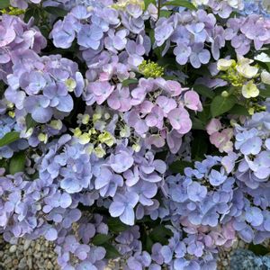 連日の真夏日 皆様 暑さに負けず水分補給して元気にお過ごし下さいませ 植物の水分補給も大変ですが 何とか 花も頑張っていますね👍 我が家で咲いてるアジサイ 1️⃣ スフレ 班入りで葉だけでも楽しめるアジサイです 2️⃣ ハイドランジア 花の色が濃厚な青紫 軒下の地植え 3️⃣ ラグランジア ブライダルシャワー 柔らかい花びらをつけ 淡いグリーンから白そして薄〜いブルーへと変化 4️⃣ ティンカーベル 5️⃣ アジサイ白 混じり気の無い 真っ白な花が眩しい