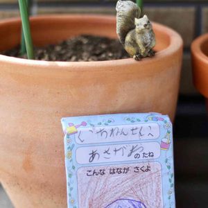息子が小学校でもらってきたアサガオの種を植えました😊裏には「まいにちみずやりをわすれずにきれいにそだててね」とメッセージがありました☺️