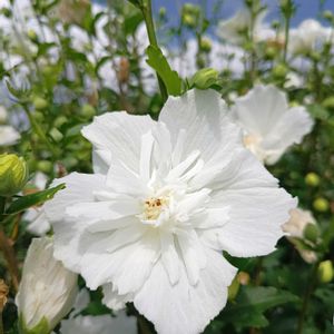今日のお花 ムクゲ 1⃣2⃣ 真っ白な八重のムクゲ、綺麗でした。 7月13日 3⃣4⃣5⃣ ピンクのムクゲ 中心の赤がステキです。8月27日 🏷 白い貴婦人✨ 🏷 木曜日は木 🏷 木曜日は桃色