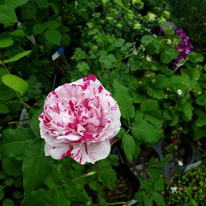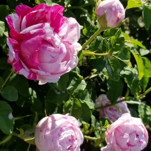 ①② 斑入り野葡萄 葉だけの時でも見ていて可愛い😊 ③ ヴァリエガタディボローニャ 一昨年くらい?に イングリッシュガーデンで見かけ あまりにも可愛すぎて 昨年 ポチりました😆 たくさん蕾があります♬.*゚ なのに…明日夕方~ 雨😮💨 ④ クリスティアーナ 昨年は不調で花数少なかったけど 今年は 絶好調✨