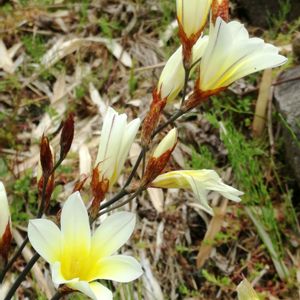 南アフリカ原産のスパラキシスです🌼 フリージアに似ていますが、色が違います。 固い土から毎年出てきて咲いてくれると丈夫な子です🌼