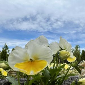 零れ種から咲いているパンジー💕 柵の外にも咲いている〜😅 可愛いから、見守るしかないですね🥰 今日はニュージーランド🇳🇿フラックスのお手入れ 花芽を付けているので、道路側に垂れ下がっている葉を少しだけ🤏カット✂️ 居心地良さそうで、グングン伸びています〜😄 NZより👩🏻🌾