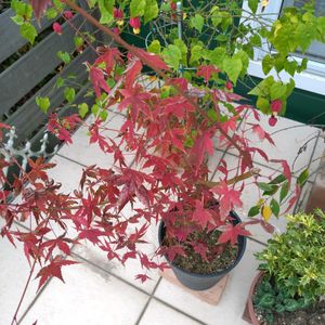 もみじが紅葉しました♪ ご近所の庭に種が飛んてきてよく芽が出るらしく いただいた小さな苗が大きくなりました〜 3年目 2023年7月から 12/3