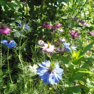 ニゲラ 朝の花は特に綺麗 ここ数日はずっと畑の草取り 一日中💦 早朝しか庭のお手入れができないので、早くから ポットの花の苗を植えました。 忙しすぎて、ポットのままで花が咲いてしまったり、あまりに可哀相で....。 気付くと、いろいろな花が咲いています。 今朝はニゲラが主役