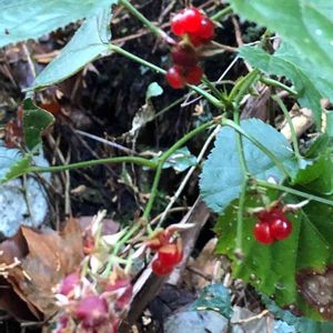 「フユイチゴ(冬苺)」 ちょっと、つまんで食べてみた😋 あまり味がない、酸っぱい味が少し🤏 見て楽しむ方かなぁ〜😄 2021.12.19