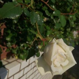 ミニばらがうどん粉病に。。 ショックな朝。 重曹スプレーをかけてみる。 治りますように。