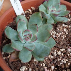 ㊤2枚 【エケベリア属 パール フォン ニュルンベルク】 Echeveria 'Perle Von Nurnberg' 別名 パールフォンニュルンベルグ ニュルンベルグの真珠 ㊦ 【エケベリア属 メラコ】 Echeveria 'Melaco' (交配種 交配親不明) カイガラムシに侵された お気に入りの寄せ植えを解体🐛 春はあんなに綺麗だったのに、 今は無残な姿に( ω-、) 秋に向けて養生させる予定