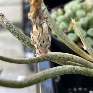 ドリームガーデン購入品ーー アストロフィツムのカプトメデューサ。 これがあると思ってなかった本命品! 伸びた先にあるポチッとした白い部分、ここになんと花が咲きます🌼👀 この時近くにいたどーらくさんを捕まえて色々お話を聞いて、ますます興味深くなりました。 実生苗がむちゃくちゃ珍しいそうです。 ホントは一旦悩んで、また戻って選びました🤭 購入品は以上🪴🌵 でも実は番外編もあるので、載せれたら載せます😂