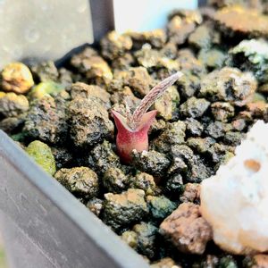 新年多肉巡り その2(接ぎ木) も〜😍このビジュアルで即決定‼️ 育て方も何者かも分からずに即決定‼️ 知ってる方もいらっしゃるかと思いますが私は始めてのご対面 しっかり育て方調べ、長〜いお付き合いをしたいです😁 あら汚れっ‼️と思いきや 🔎よくよく見るとアレオーレ、 しっかり刺も見えます ワクワク止まりませ〜ん💕 素敵な鉢に植えたい どんな鉢が、良いのか全く想像がつかない……… どんな鉢が、良いと思いますか?