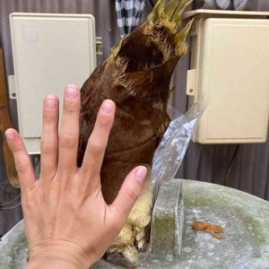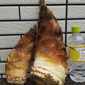 筍 タケノコ 重さ、2.7kg ある巨大筍。 2本で1000円。 自転車の前かごに乗せて、きました。 立派でしょ😆😅🤤