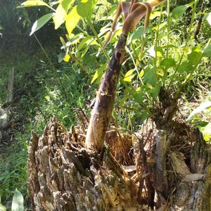 我が家とお隣の境界にある切株に タケノコがニョキニョキ スゴイですね😅
