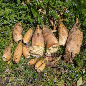 土曜日は、今年2度目の竹の子掘り🎶 私と娘は別の用事を済ませてから合流! と思ったら、私たちが行った頃にはすでに作業は終了し、お釜でグツグツ😱 息子と夫の2人での作業だったため、時間がかかると思っていましたが、思ったような量がなく、早々に終えたとのことでした。 とはいえ、お釜に半分以上の量✨ 2人で頑張ってくれました😊 私は今年はほぼ山には入らずだったため、待ち時間に少しだけ散策🎶 山に入る通路に、すでに竹になりつつある、巨大竹の子を発見😳 今年は出遅れてしまった感が否めず残念です😢 しかし、こういうのを見ると、竹の子が竹になっていくんだなということを分かりやすく再認識しますね😂 義実家のすぐ裏ではあるのですが、民家が近いとは思えないような静かさで、なんだか別世界✨ かぐや姫いないかな😊