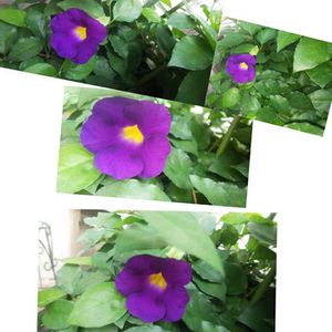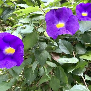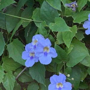 ツンベルギア、今朝は6輪咲いてます。 裏側や葉っぱで見えないですが。