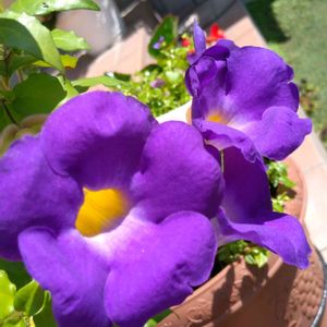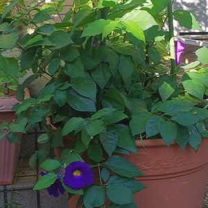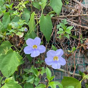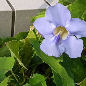 ツンベルギアの花が一輪咲きました🎵 奄美大島から来た挿し木苗が どんどん大きくなりましたが、 花はなかなか咲かなくて、半ば諦めてました。