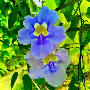 おはようございます🤗 先日、沖縄へ行った時に咲いてた花です。 初めて見ました。 直径10cmくらいの大きな花です。 いろんな色のハイビスカスが 所々で咲いていて、同じくらいの大きさだったから『あら💜珍しい色』 と思って近づいて見てみると 全然違う花でした。 なんていう花ですか? .₊̣̇.ෆ*˚*ෆ.₊̣̇.ෆ*˚*ෆ.₊̣̇.ෆ*˚*ෆ.₊̣̇.ෆ*˚*ෆ.₊̣̇. 早速、がっちゃんさんに教えていただきました🤗ありがとう( ⸝⸝•ᴗ•⸝⸝ )੭⁾⁾ *ベンガルヤハズカズラ* 💜キツネノマゴ科 💜ヤハズカズラ属 💜学名:Thunbergia grandiflora 💜非耐寒性ツル性多年草 💜別名:ツンベルギア・グランディフローラ