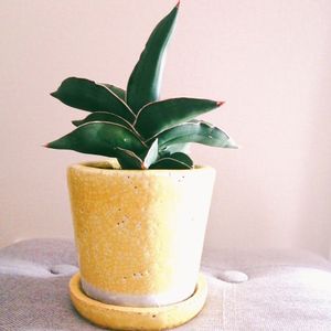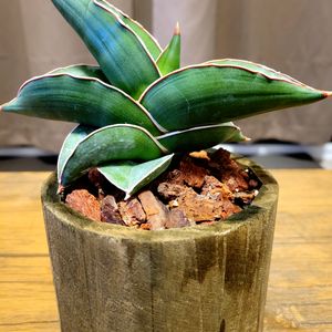 サンスベリアサムライドワーフ子株を鉢植えに。 誕生日プレゼントにもらった鉢に植えました。うん、いい感じ😊