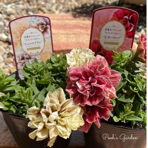 こんばんは☺︎ 大阪府守口市の園芸店、Le petit Jardinです♡ 大大大人気の花日和さんオリジナルペチュニア♡ホイップマカロンシリーズ♡ モカモンブラン、ショコラブラン、フレーズムースの3色入荷しています(о´∀`о) めーっちゃめちゃ可愛いです♡ 株もしっかりとしていて、葉の張りもとても良いです(*^^*) 大人気でなかなか手に入らない!探してたっ!って方はぜひぜひ✴︎ ご注文はミンネ、メルカリ、インスタにて承ります⁂ それぞれのサイトへは、私のプロフィールから飛べるようになっています(*´꒳`*) 少量しか入荷していないため、早いもの勝ちです♡