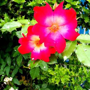 柔らかな緑の並木道 若いもみじの枝から青い空 澄んで透き通る水底を覗くように 太陽がキラキラ光る 住宅街を曲がったら 目の前にぱあっと開いた薔薇 ごぼれ落ちた雪やなぎの白 輝くように枝につけて 風に運ばれる甘い香り キスをしたくなる赤い花びら 🌹東京 晴れ 15℃ 気持ちのいい朝ですね ツルバラ コクテール たくさん蕾をつけて 満開が楽しみな薔薇の散歩道💕 今日も良い日に❣️