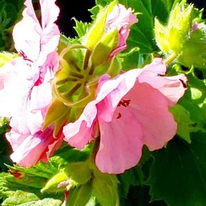 光を浴びて 花も生き生きと 日ごとに力強くなる陽射し 日光浴で免疫アップ ひなたぼっこする 私の心も 強くなっているかしら 🌸花と花が手を繋いで 輪を作ってる みんな一緒 頑張ろうね 💕 🌸ゼラニウムは四季咲ですが、ペラルゴニウムは、別名「ナツテンジクアオイ」というように春から夏にかけて咲く、一季咲です。 ペラルゴニウムは花弁の縁がフリルのように波うち、中心にブロッチ(班紋)が入る品種が多く、葉に切れ込みがあります。 ゼラニウムには独特のにおいがありますがペラルゴニウムには強いにおいはありません。