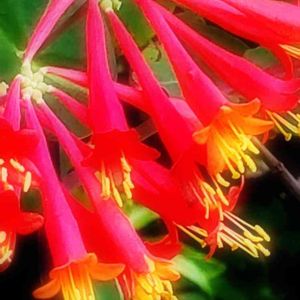 時には赤く 染まってみたい 我慢などせず 真っ赤に 真っ赤に 紅に 強く葉っぱを突き抜けて 花をつける 太陽を食べたような 赤が眩しい 突抜忍冬の咲く小道 🌸