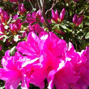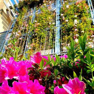 高く伸びるジャスミンの 華やかなカーテンへ 鮮やかな紅桃色のツツジが 長く長く続いている 新緑のもみじの葉かげに 青空を見上げながら のどかな春を楽しむ 座る人のない 陽射しのベンチで 春風が ちょっとひと休み 🌸お気に入りの散歩道