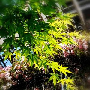 若葉のもみじが 薄紅色のジャスミンと 空を透かして 輝いている ウィスク ウィスク ピィピィと 賑やかな小鳥の声に 新緑の豊かな枝を仰ぎ見る あれはなんの鳥だろう 真っ青な空に 太陽の強い日射し 少しずつ夏がやってくる 🌿