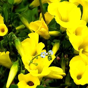 にぎやかに おしゃべりしている 花たちに 風にのった 桜の花が舞い降りて 蝶が あたり一面 飛んでいるようでした 🌸今日の花 カタバミ オキザリスをオオキバナカタバミと言うんですね😊お花、そのままのお名前。金のかんざしとか、🧚妖精のラッパ📯とか、夢のあるお名前が良かったなぁ😁💕 ピンクのカラスノエンドウの花と一緒に、賑やかに咲いてました。 満開の桜の花吹雪 うまく写真にとれなくて残念でした