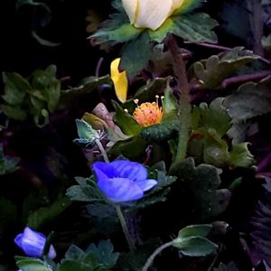 夕暮れの 魔法の時間 花たちの春祭り 今日赤い実を 実らせた花が 嬉しそうに話していたよ ねぇねぇ見てよ 私の坊や とってもとっても 可愛いのよと🍓 🌱金に縁取る夕陽が薄暮から紅に変わっていく時間は、花たちの見せる表情も輝いて、とっても魅力的ですね。 ヘビイチゴの可愛い花とオオイヌノフグリが一面に咲いて綺麗でした💖