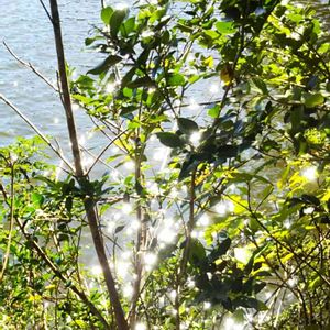 ✨光の雪✨ 湖面でキラキラと反射したお日さまの光が、 水辺の植物に降り注ぐ 雪のように見えました✨