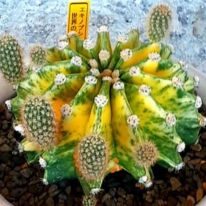 ふ、ふ、ふ、サボテン🌵 半年前にHC の片隅で見つけた 世界の図❗斑入りが薄かったけどようやく黄色が目立ってきた✨