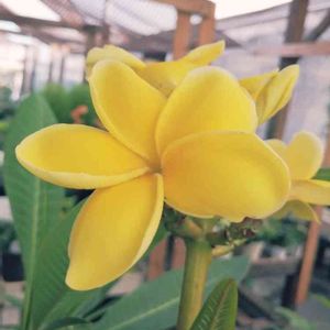 近所のショッピングセンターで売っていたプルメリア。接ぎ木でしたが良く咲いていました。