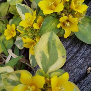 リシマキア開花💛 斑入りのはっぱと小ささ、形💕 枕木から垂れてます💛