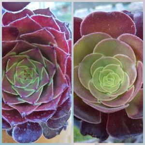 good morning💚 アオエニウム どちらがカシミアバイオレット? どちらがカッパーケトル? 私は最近知りました(*^^*)