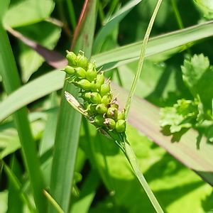 一昨日の丘陵地にて この植物は、 シラスゲ? 何か特別感あると言うか個性的な 見た目でした。 平地、低山の林内の湿地に生える。 多年草 地下匐枝を伸ばし増える。茎は、菱形、葉の裏が白い。 頂小穂は雄性で、下の小穂4〜6個は雌性。 葉の裏確かめてなかったのですが、 それらしい。 花期 4〜6月 分布 北、本、四、九 カヤツリグサ科スゲ属