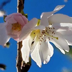 冬彩(ふゆいろ) 冬桜?十月桜?です!花径は 小さ目なのね、こちらも春にも、 出会います! 冬桜は、マメザクラとサトザクラの 交配種かな! 十月桜は、エドヒガンとマメザクラ の交配種とか!