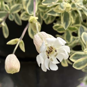 今日の庭 ①②シレネユニフローラ 斑入り苗から1ヶ月可憐な花がふんわりさきました(初) ヨーロッパ分布 ナデシコ科 ③エレモフィラニベア シルバーリーフに薄紫の花が並ぶ(初) オーストラリア原産 ゴマノハグ科 ④春の薔薇これから🌸 ⑤金魚草も鮮やか