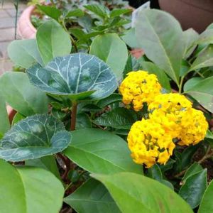 おはようございます😃 千葉の空、くもり☁️のち雨🌂 コバノランタナ💛 前シーズンのシクラメンの葉っぱが育ってきました❗ 蕾が出てくるかしら⁉️