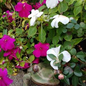 おはようございます😃 千葉の空、晴れ☀️ インパチェンス紅白咲いてます🙆 冬眠寸前、カエル祭り第2投稿🐸