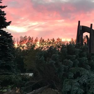 毎日のように🐶散歩で歩く近所の公園陸上競技場。 5日未明の台風で30本くらい? 大きな木が倒れました。 そのうちの一本の松。 夕焼けが、たくさんの倒木を悲しんでいるように見えます。 台風の翌日には 地震により園路の一部が陥没し、園内🅿️は使えません😢