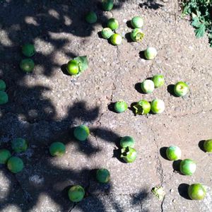 この時間、やっと風が落ち着いてきました。 台風10号より、台風9号崩れの低気圧の方が酷いです。(+_+) ミニトマトや茄子やインゲンは、風よけネットでぐるぐるにしたのですが。柿の木は背が高いので不可能でした。 で、その結果がこれです。(TT) 去年が柿のお休み年だったので、今年は沢山なったと喜んでいたのに。😫 これで、落ちた実の半分位です。午前中も沢山!昨日も沢山! 今年の柿の実も残念なコトになりそうです。😓