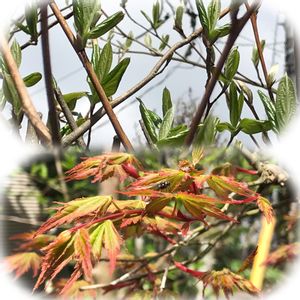 散歩に出られないので、庭の新緑投稿。 ヒメシャラとモミジが、この数日の陽気と雨で、一斉に芽を吹いた。