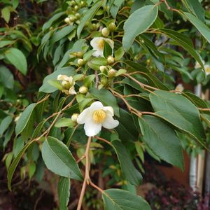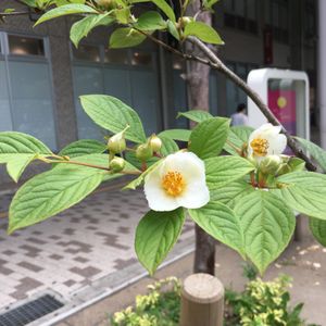 姫沙羅(ヒメシャラ)咲きはじめた。