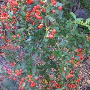 5月にピンク色の花を咲かせた🌸紅花山査子(赤花八重山査子) 秋には赤いまん丸の実を付けました❤️