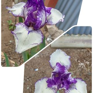 ミニジャーマンアイリス♡ 去年に我が家にお迎えし、 今年1番乗りで咲きました👏( ˊᵕˋ*)パチパチ 品種名がわかりましたヽ(^0^)ノ 品種名 ホワイト ブルー でした( ⁎ᴗ_ᴗ⁎)ペコッ ありがとうございました😁🎶