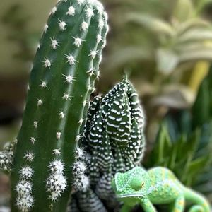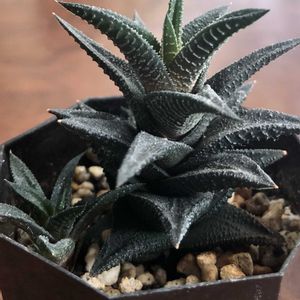 ハオルチア硬葉系のリネベルディ🪴✨子株ちゃんが顔を出してます➡️はちゅの日🦎やってきたガォ〜🔥暑さも今日まで⁈