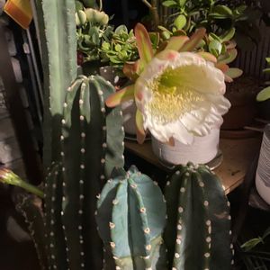 柱🌵鬼面角 21時からの開花SHOWTIME💫 23時50分撮影 自撮り棒は使えるね🤟🏻💗