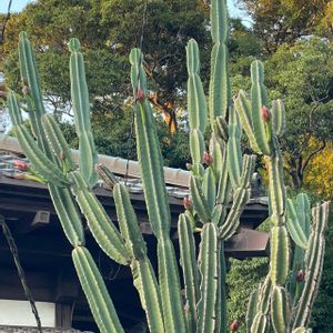 見えるでしょうか? 我が家の4m超えの屋根より高い柱サボテン。 もうお花が終わったかと思ったら 小さな蕾がまた沢山付いているんですよ。(°○°...)! また咲くかも\(ˊᗜˋ)/ヤッター